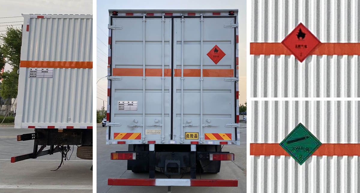 1、該車適用于運輸危險品。廂體頂部封閉,不可開啟。運輸具有獨立容器包裝的易燃?xì)怏w及運輸具有獨立容器包裝的非易燃無毒氣體。運送危險品類項號:2.1,2.2。液壓升降尾板收起狀態(tài)水平長度為290mm,尾板質(zhì)量為550kg。2、側(cè),后防護材料均為Q235,螺栓連接;后防護截面尺寸120×60mm,下邊緣離地高490mm。選裝后部無液壓尾板。3、隨底盤選裝平頂駕駛室;選裝駕駛室前面罩;高頂駕駛室頂部氣喇叭為選裝件;駕駛室前角擾流板為選裝件。僅選用排氣管前置、限速裝置(限速80km/h)、前輪盤式制動及子午線輪胎的底盤;安裝帶衛(wèi)星定位功能的行駛記錄儀。ABS型號/生產(chǎn)廠家:ABS 8/東科克諾爾商用車制動系統(tǒng)(十堰)有限公司。發(fā)動機/油耗值(L/100km)對應(yīng)關(guān)系為:DDi75E350-60/38.1。后軸采用空氣懸架,轉(zhuǎn)向輪裝備輪胎爆胎應(yīng)急防護裝置。 |